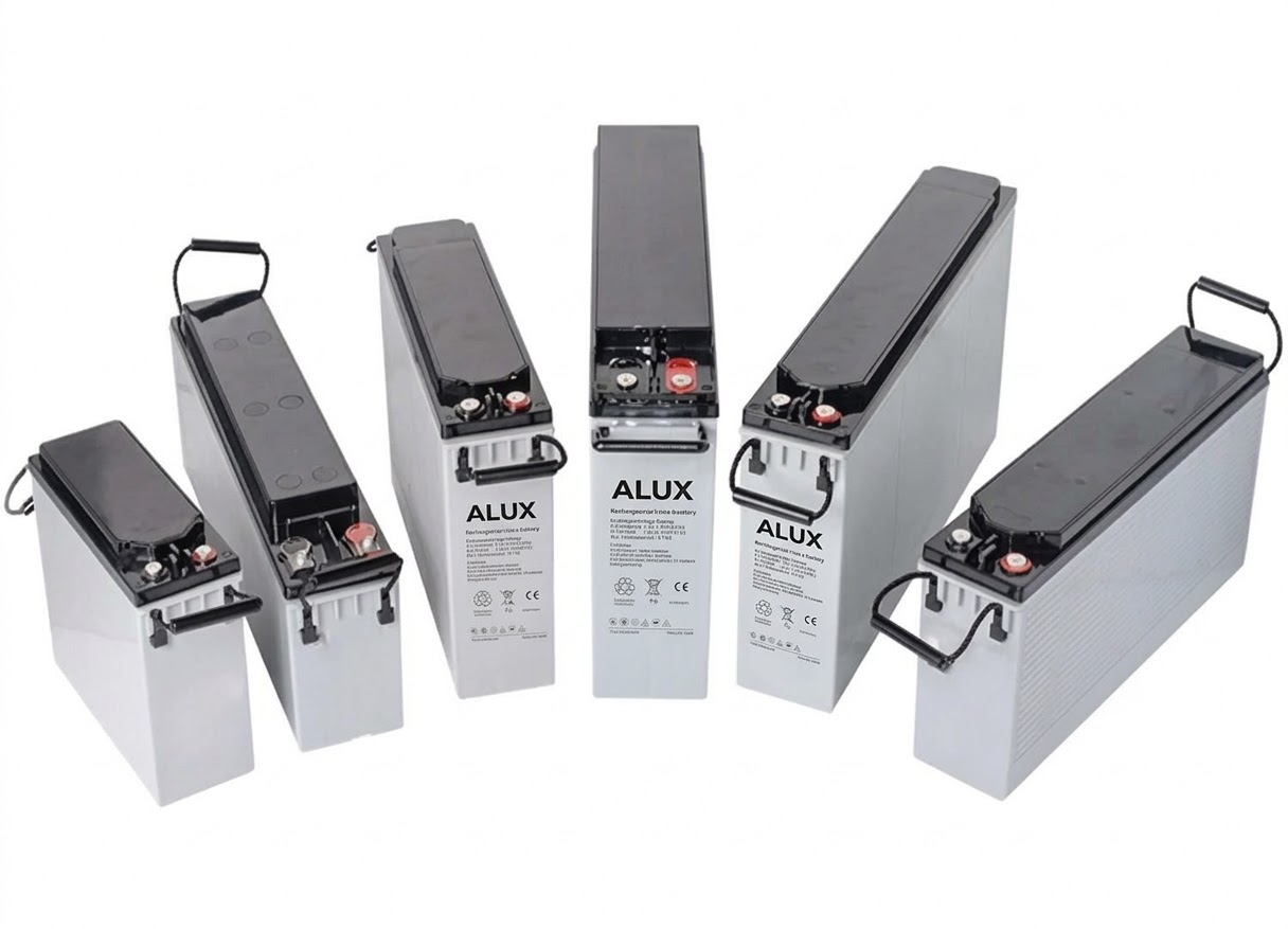ALUX front terminal lead acid batteries are high-performance sealed lead-acid (SLA) batteries with a full capacity range from 50Ah to 200Ah, specially designed for solar off-grid systems, backup power, UPS and telecom applications. Featuring a front terminal design for easy installation, maintenance and high space utilization, these batteries offer excellent charging efficiency, stable discharge performance, low self-discharge and long service life. Rugged, leak-proof and widely compatible, they are the ideal direct replacement for traditional SLA batteries in photovoltaic energy storage and critical backup power solutions.